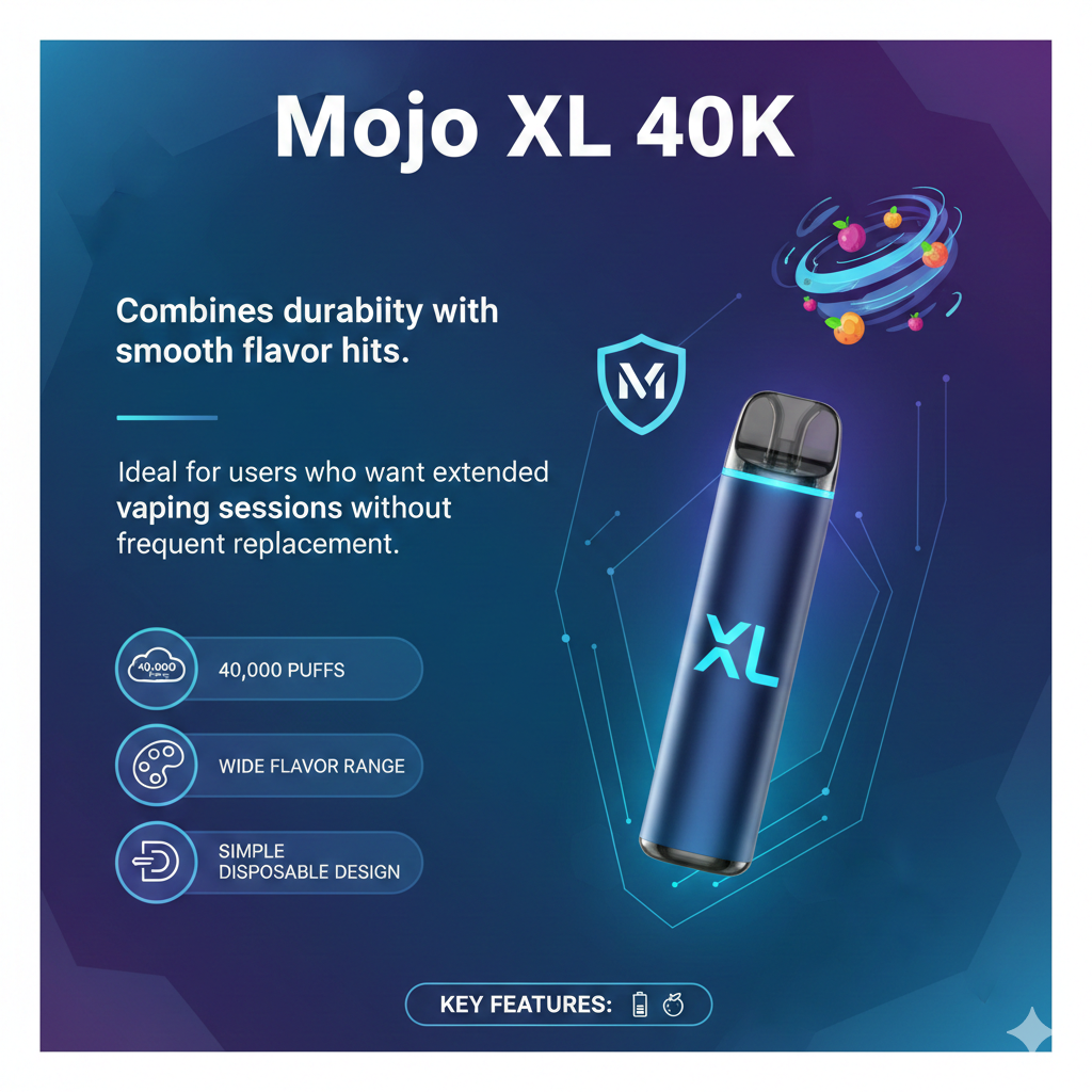 Mojo XL 40K combines durability with smooth flavor hits. Ideal for users who want extended vaping sessions without frequent replacement.