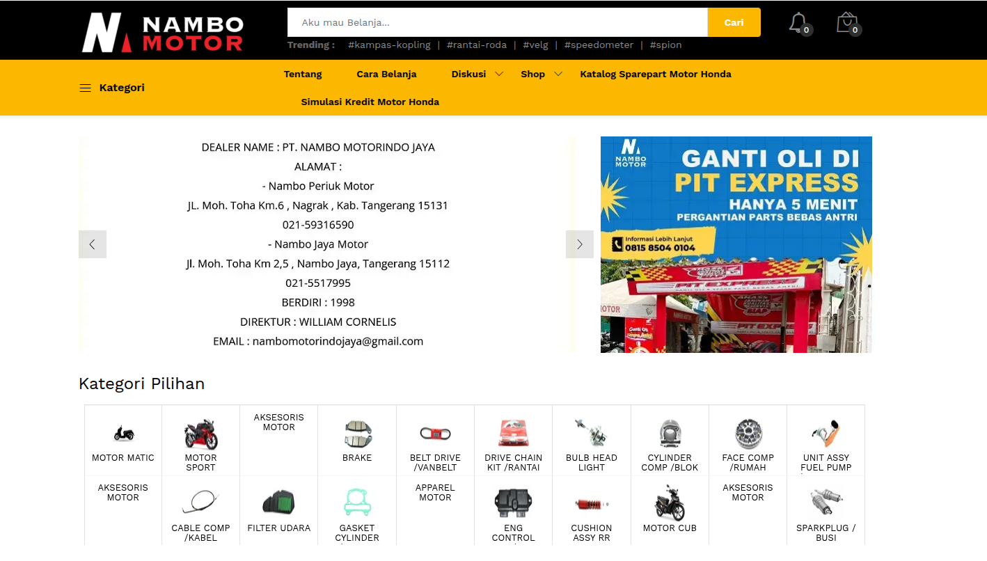 Nambo Motor is the best and most comprehensive official dealer for HONDA motorcycle sales and financing in the Tangerang and Jakarta areas. Cash price list, low down payment. Genuine Honda spare parts and accessories available.