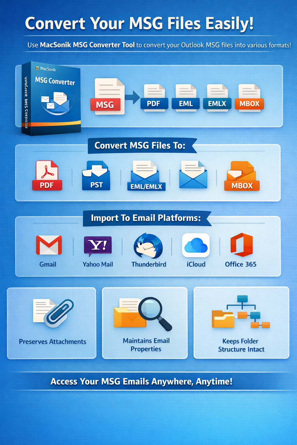 If you are searching for a simple way to view MSG files, the MacSonik MSG Converter Tool can make the process much easier. This tool allows users to convert Outlook MSG files into different file formats like PDF, PST, EML, EMLX, and MBOX without losing important email details. Once the conversion is complete, the files can be easily imported into popular email platforms such as Gmail, Yahoo Mail, Thunderbird, iCloud Mail, and Office 365. This makes it convenient for users who want to access MSG emails without relying on Outlook. The tool also preserves attachments, email properties, and folder hierarchy, ensuring that the converted data remains organized and accessible.